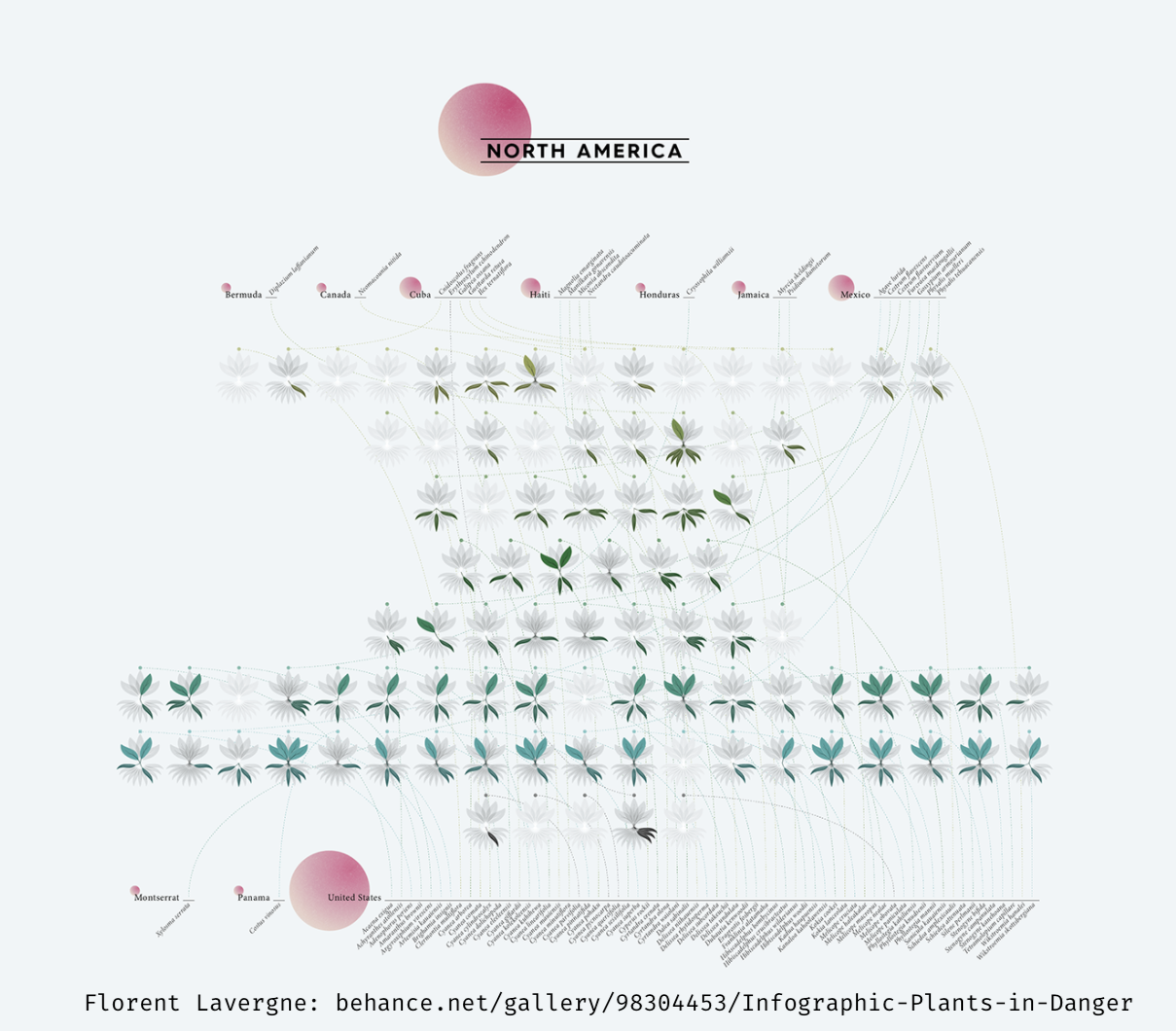 Just like animals, plants are going through an important biodiversity crisis. Many species from isolated areas are facing extinction due to human activities. Using distribution data from the International Union for Conservation of Nature (IUCN), I designed these network maps to inform on an important yet underrepresented topic.